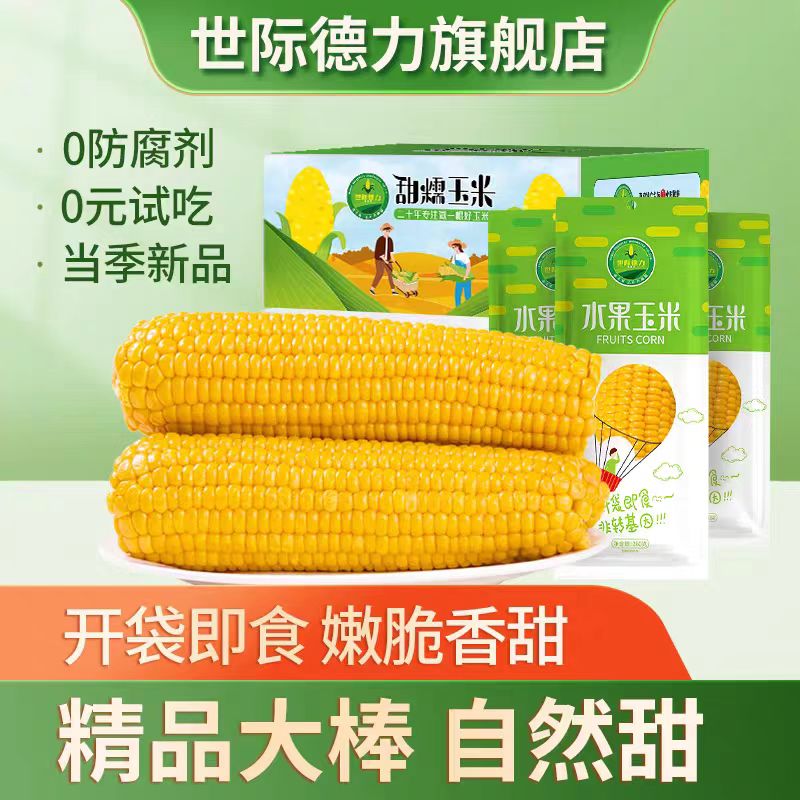 世際德力黃糯玉米寶寶苞米真空包裝拉絲低脂粗糧苞米代餐早餐10根