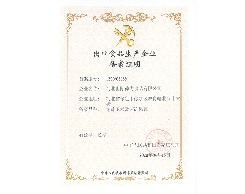 出口食品生產(chǎn)企業(yè)備案證明