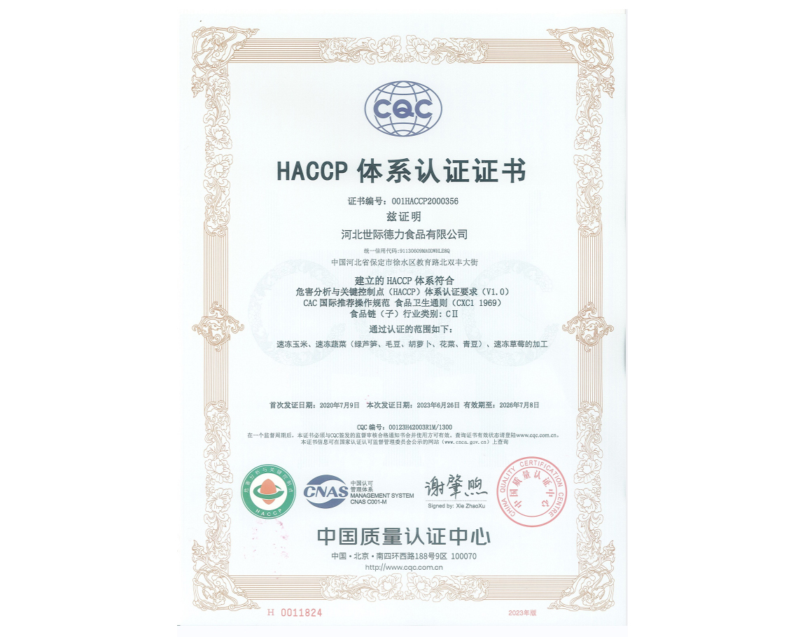 HACCP 體系認(rèn)證證書(shū)