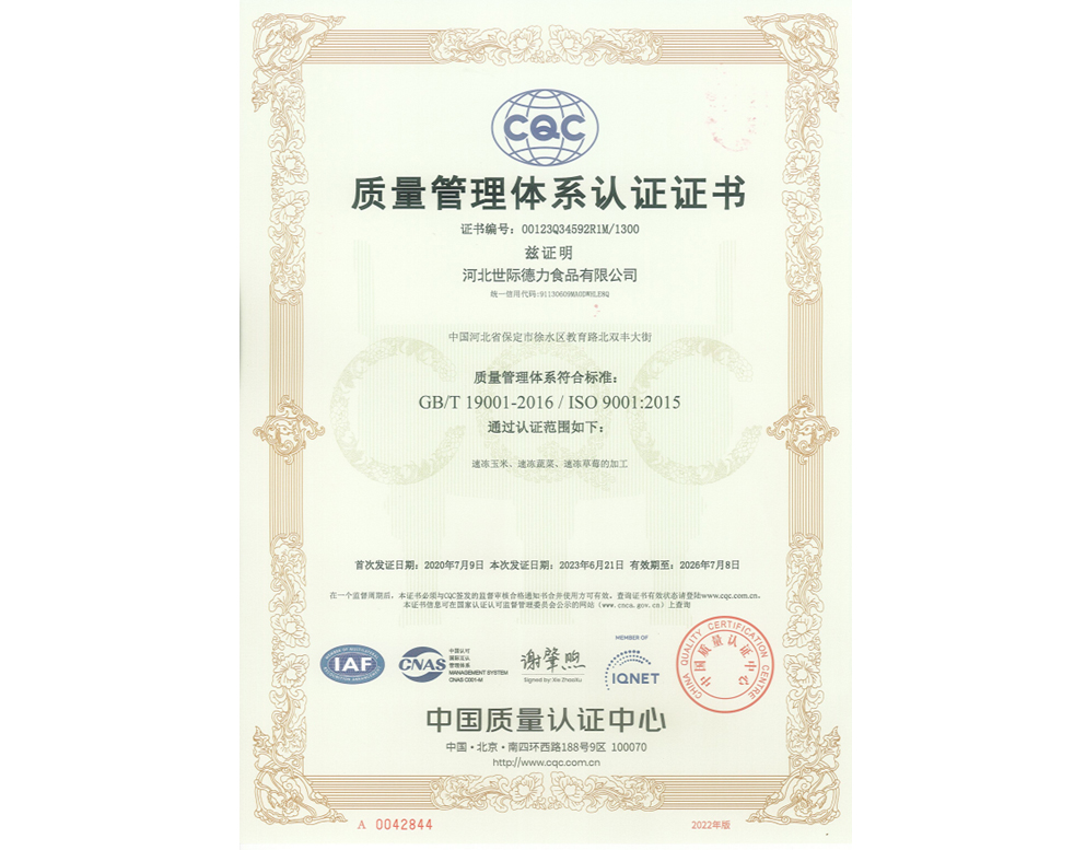 質(zhì)量管理體系認(rèn)證證書(shū)